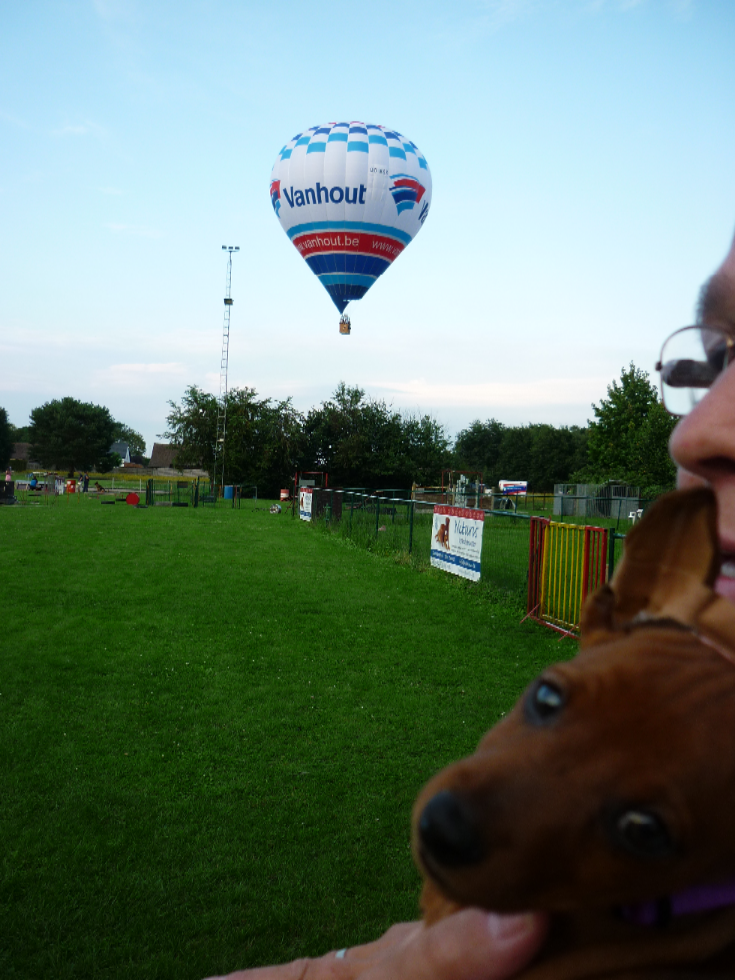 Achter de hondenschool waren ze bezig met een hééél groot ding op te blazen. De mensen hadden dat daar nog nooit gezien. Wil het toch wel lukken dat ik juist daar was zeker. Er kwam heel veel lawaai uit maar ik was helemaal niet bang.