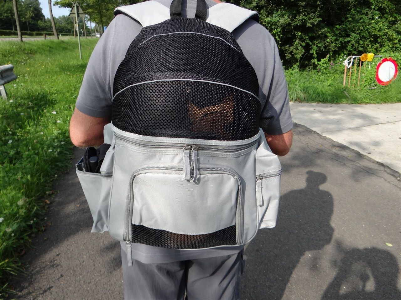 Vandaag hebben wij een flinke wandeling van wel 6km500 gedaan. Ikzelf heb natuurlijk niet zoveel gelopen. Mijn baasjes hebben ne coole rugzak gekocht. Dan kan ik mee reizen op de rug van mijn baasje Eddy. Als ik groter ben zal ik zeker en vast alle kilometerkes zelf wandelen. Ik heb al laten zien dat ik dat kan. Ik zou graag nog meer wandelen maar mijn baasjes zijn een beetje bang dat ik mij overdoe.