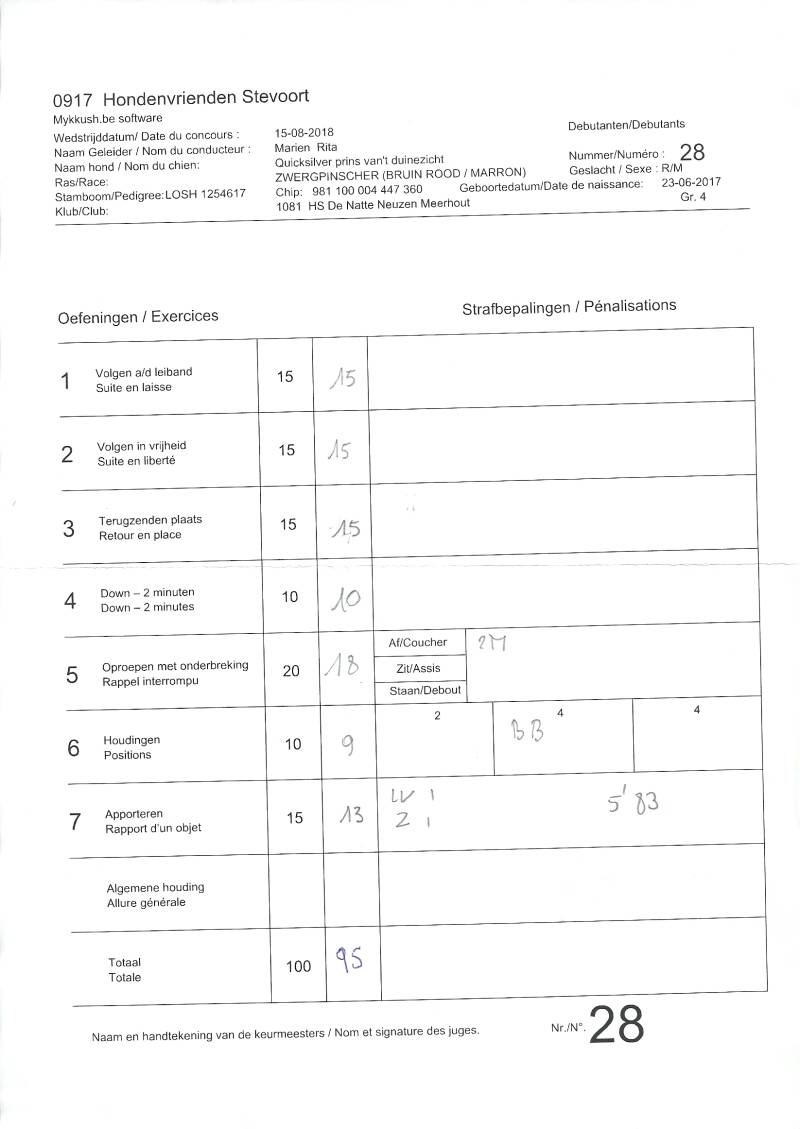 Onlangs heb ik laten weten dat ik liever GP wedstrijden doe dan shows. Deze bewering heb ik vandaag bevestigd met een uitslag van 95/100 bij de “Hondenvrienden Stevoort” te Hasselt. Mijn baasjes zijn supertevreden met deze prestatie en ik ook natuurlijk.