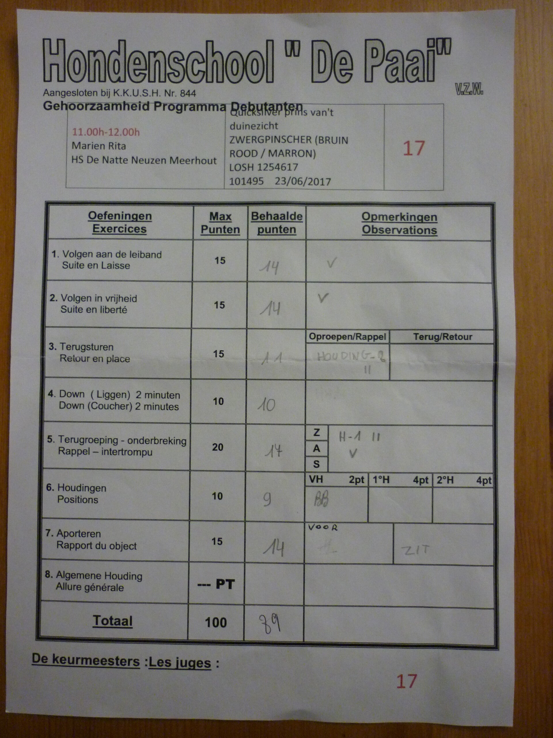 Amaai, nu was het toch wel nat en koud tijdens de wedstrijd bij hondenschool ‘De Paai’ te Oud-Turnhout. Vrouwtje Rita en ik beginnen al goed op elkaar in te spelen en dat is te merken aan de punten die ik vandaag haalde. 89/100 is weeral een puntje vooruitgang en daar zijn wij alle drie zeer tevreden mee. 👍