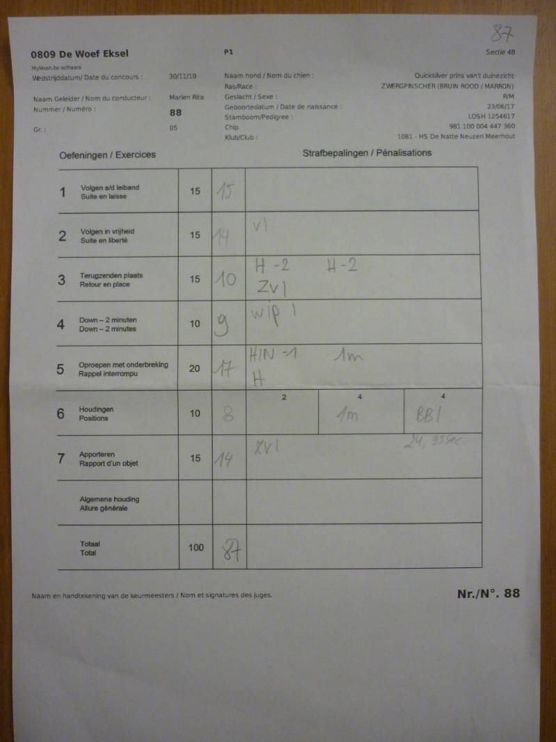 Mijn baasjes dreigden mij te verkopen aan het circus. Dat heb ik toch wel ter harte genomen. Tijdens de wedstrijd van vandaag heb ik dan ook een score van 87 gehaald en daar zijn zij dik tevreden mee. Eigenlijk kan ik wel veel meer maar dat hou ik een beetje verborgen voor hen. Sssst, zij weten het nog niet.
