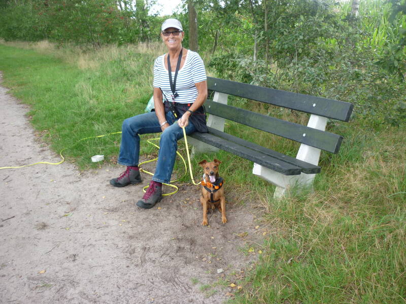 Het tweede gedeelte, rood op het kaartje, was wat moeilijker. Ik had dan ook mijne snufferd al behoorlijk gebruikt in de eerste track. En speuren is toch wel een intensieve bezigheid. Er waren geen voorwerpen te vinden maar de spoorloper had een weg gekozen waar veel wandelaars kwamen. Extra geuren dus. Dan moet mijn mayonaise behoorlijk overuren draaien om dat allemaal uit elkaar te houden. Mits wat aanwijzingen van de instructeur (spoorloper) heb ik hem dan toch gevonden.