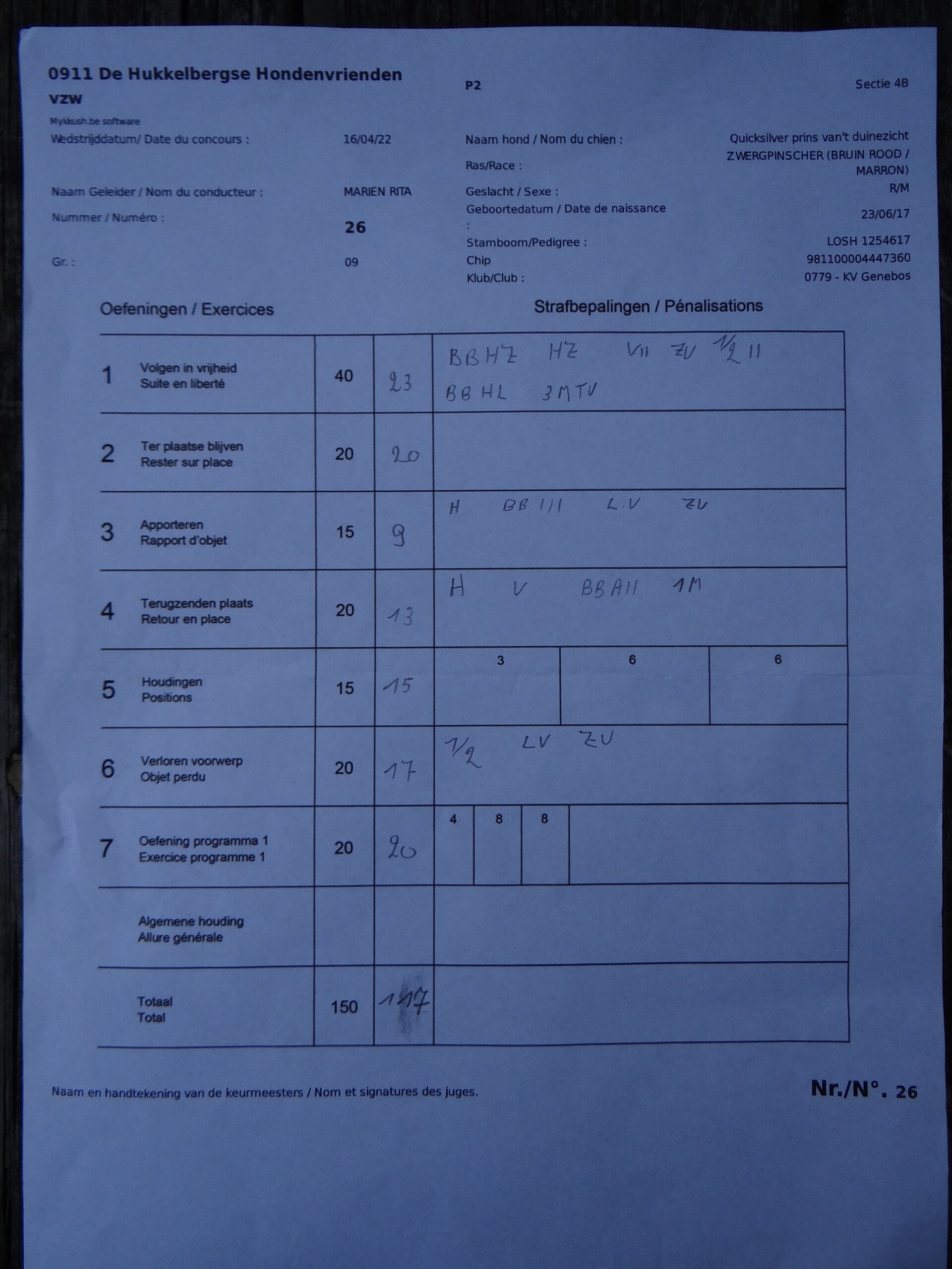 Heerlijke wedstrijd bij HBHV te Lichtaart. 117/150 Niet ontevreden. Programma 2 is een een behoorlijke uitdaging voor ons Rita en ook onze Prins natuurlijk.