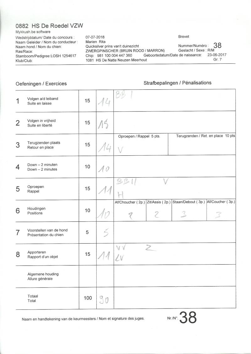 *For the transition test B> C, Rita won with Prinske on 28-01-2018, with Kv Moldernete 89 on 100. Just 1 point too little to be allowed to pass.